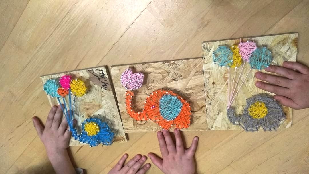 Это уникальный вид творчества, который позволяет создавать невероятно красивые и оригинальные композиции из нитей и гвоздиков. Наши аниматоры поделятся с детьми техникой создания Стринг-арта и помогут каждому ребенку создать свою собственную картину.