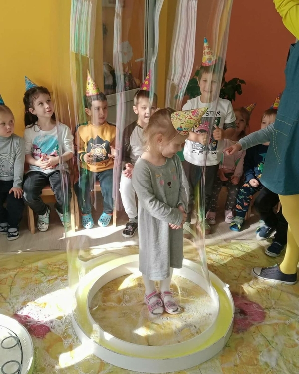 Шоу мильних бульбашок – це неймовірне видовище, яке не залишить байдужими ні дітей, ні дорослих! Повітряні та легкі бульбашки, що летять на всі боки, створять чарівну атмосферу, а наші професійні аніматори, зроблять це шоу по-справжньому яскравим і незабутнім.